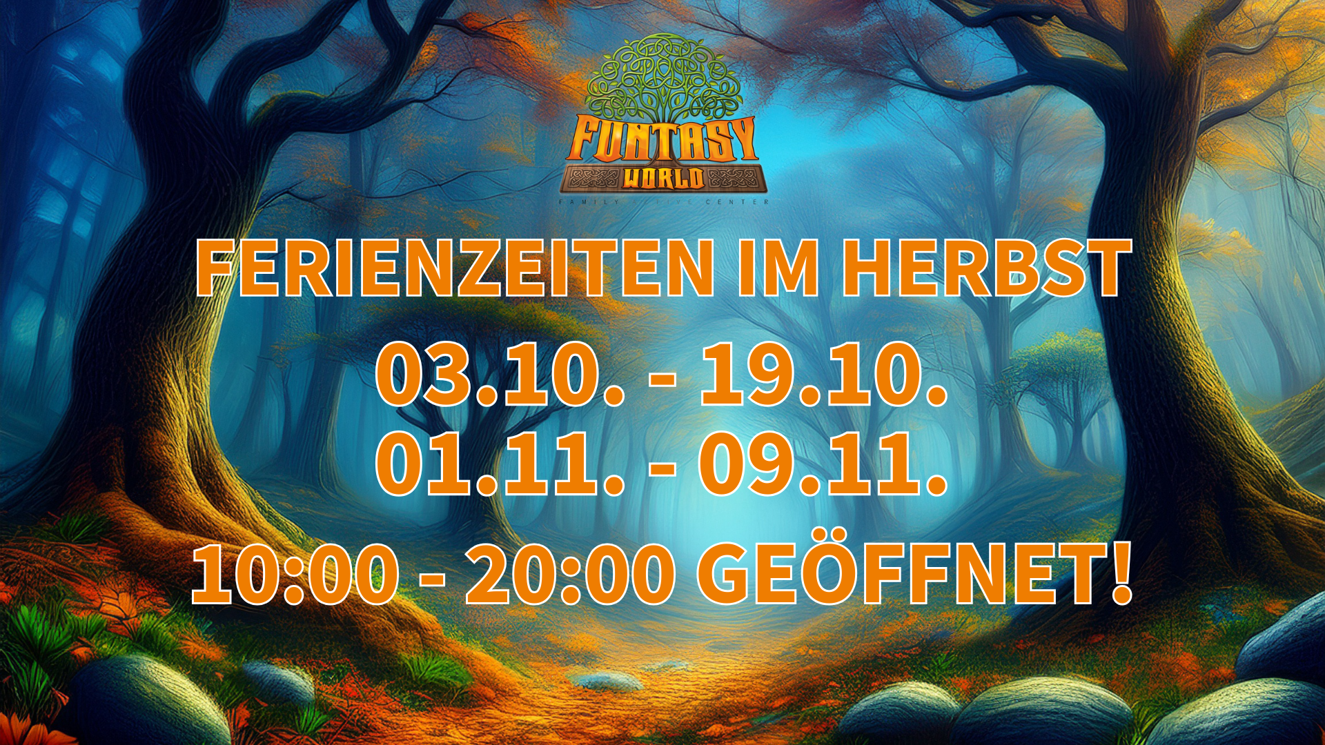 Wir haben zur Ferienzeit vom 03.10. – 19.10. und vom 01.11. – 09.11. von 10 – 20 Uhr geöffnet.